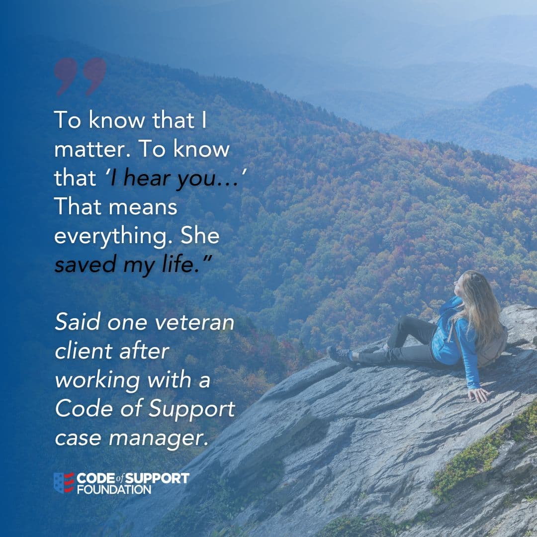"We do not consider veterans a number at Code of Support, we come alongside them to hear them and support them in whatever situation they may find themselves in." - Allyson Bowers, Director of Programs